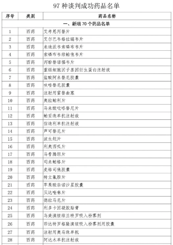 国家医疗保障局医药管理司司长熊先军指出,一是医保目录药品结构明显优化,保障能力显著提升。将一批认可度高、新上市且临床价值高的药品调入目录,癌症、罕见病、慢性疾病用药以及儿童用药保障能力明显提升;二是药品费用显著降低。通过发挥医保部门“战略购买者”作用,以量换价推动药费大幅下降。多个全球知名的“贵族药”开出了“平民价”,进口药品基本都给出了全球最低价。保守估计,通过谈判降价和医保报销,患者个人负担水平将降至原来的20%以下,个别药品降至5%以下;三是突出了鼓励创新的导向。12个国产重大创新药品谈成了8个。这次谈判成功的药品绝大多数都是近年来上市的新药,其中很多事2018年新上市的。这些新上市的药品被迅速纳入目录,释放出支持创新的明确信号;四是在探索符合中国实际的医保药品目录调整方式方面取得了进展。