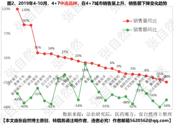 4+7试点一年来,指标完成进度超预期,得到了广大医生和患者的响应,中选产品的销售量明显上升、销售额下降,原研产品市场份额开始下降,以量换价、仿制药替代效应开始显现。