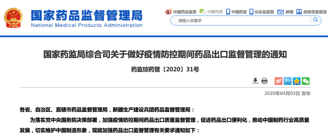 《通知》提出,要严格规范药品出口证明管理,要求各省级药品监管部门要按照《药品管理法》等法律法规有关规定,严格规范出口欧盟原料药证明文件、药品出口销售证明、蛋白同化制剂和肽类激素出口准许证等药品出口证明的出具与管理。